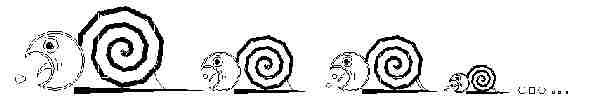 | One day I was setting up a LISP routine to draw spirals. Some spirals looked a bit snail shell like. Using only prinitive entities I drew a "snail". I did not recall very well just how snails really look. Someone commented that the snail looked sick. So I added a little "snail barf". That is where the puking snail came from. Sometimes it can be found on the wire side of printed wiring boards I have designed. |